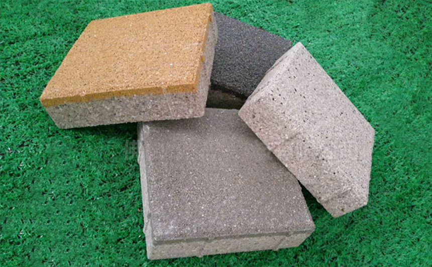 3、 彩石复合混凝土透水砖:材质面层为天然彩色花岗岩、大理石与改性环氧树脂胶合,再与底层聚合物纤维多孔混凝土经压制复合成形,此产品面层华丽,天然色彩,有与石材一般的质感,与混凝土复合后,强度高于石材且成本略高于混凝土透水砖,且价格是石材地砖的1/2,是一种经济、高档的铺地产品。主要用于豪华商业区、大型广场、酒店停车场和高档别墅小区等场所。